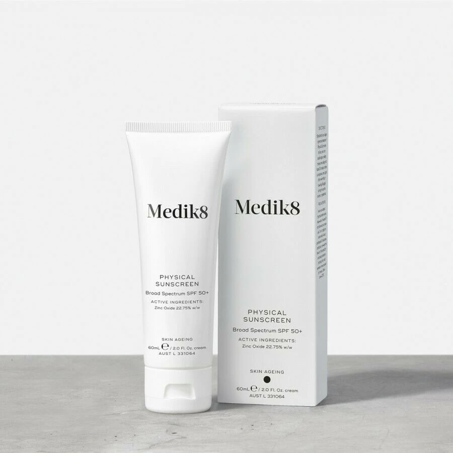 Medik8 Physical Sunscreen is our high-performance SPF 50+ sunscreen that provides powerful broad-spectrum protection from UVA and UVB rays – your daily skin defence against the sun. Medik8 Physical Sunscreen Broad Spectrum SPF 50+ is the perfect must have year round to prevent premature ageing and sun damage